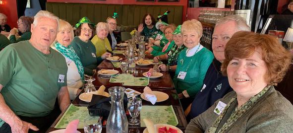 At the St. Patty's Day party, members anticipate a scrumptious meal!